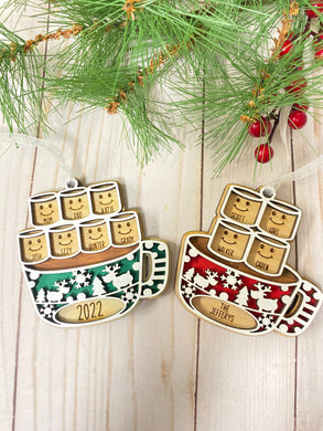 Hot Cocoa Mug Family Marshmallows Ornament